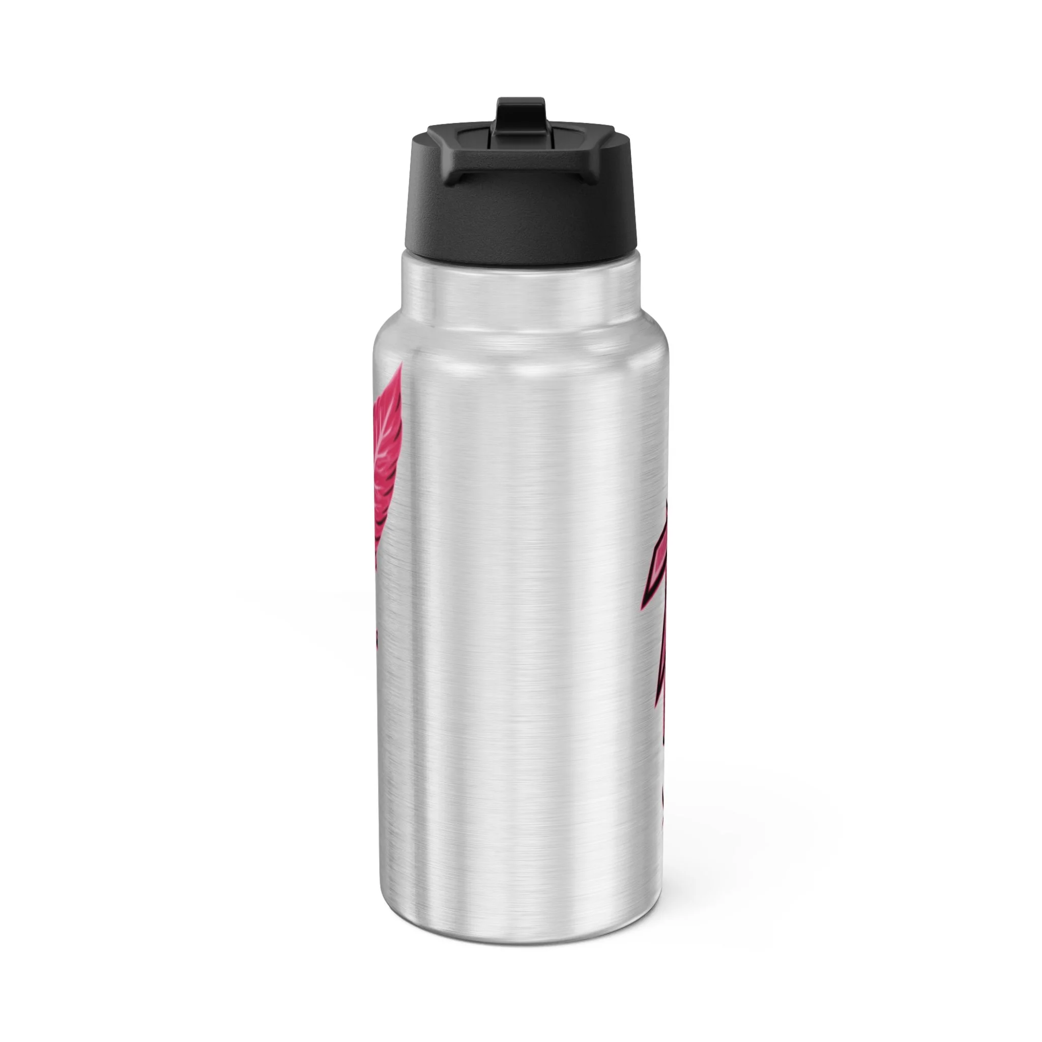Product features - Bright, high-definition print that resists fading - Durable stainless steel body with double-wall insulation - Flip-top spout with included inner straw for easy sipping - Secure black screw-on cap; holds a full 32 oz (0.95 L) - Hand wash only to preserve coating and vibrant colors