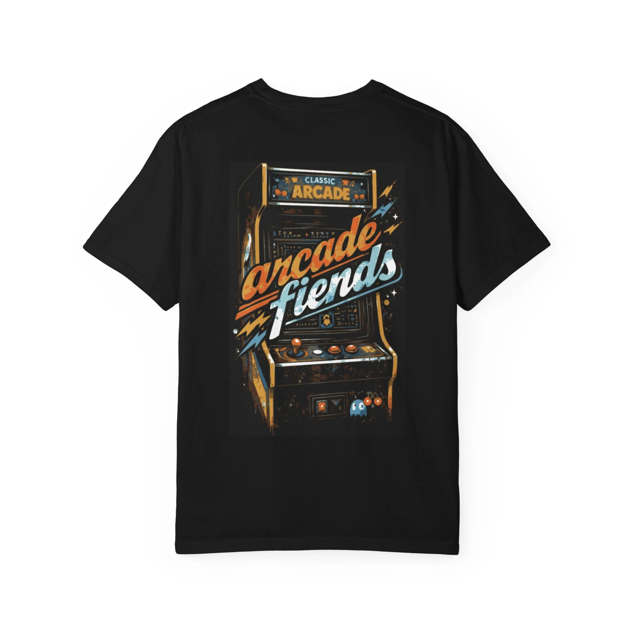 This heavyweight garment-dyed tee feels like a found favorite from the moment you pull it on. The relaxed silhouette and soft, lived-in color come from the post-construction dye process, giving each shirt subtle variation and that worn-in comfort that gamers and night-shift nostalgia hunters appreciate. The front features a small vintage logo, and the back shows a glowing arcade cabinet scene with retro lettering — a quiet badge for anyone who lives for high scores and neon-lit nights. Wear it to late-night arcade runs, retro meet-ups, or while replaying classics at home; the sturdy construction and substantial weight hold up while you game, hang with friends, or just lounge in that perfect, familiar way.